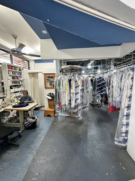 Operational dry-cleaning plant with machinery, workflow, and established client base