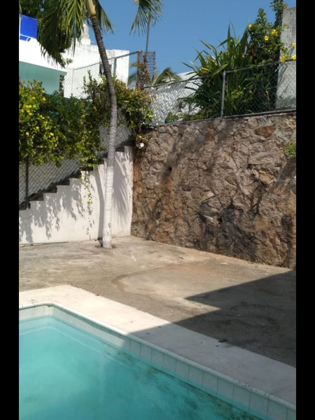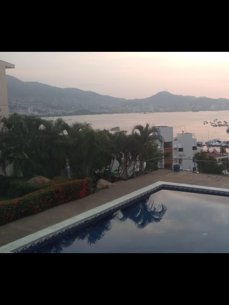 Casa en Acapulco con impresionante vista al mar ,la cual mide 125 Mtrs de superficie y 205 Mtrs de construcción tiene sala,comedor con balcones cocina integral,medio baño,cuarto de lavado ,una cochera ,en planta alta tres recamaras con clóset, y aire acondicionado,dos baños ,alberca,calentador solar vigilancia las 24 hrs