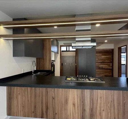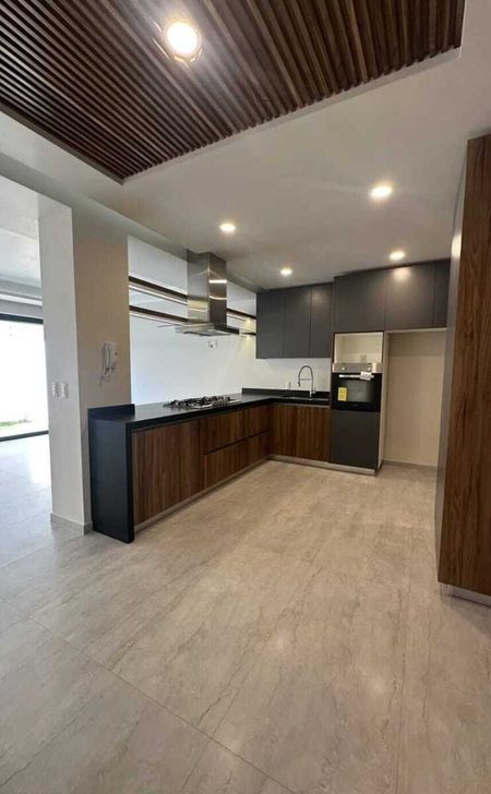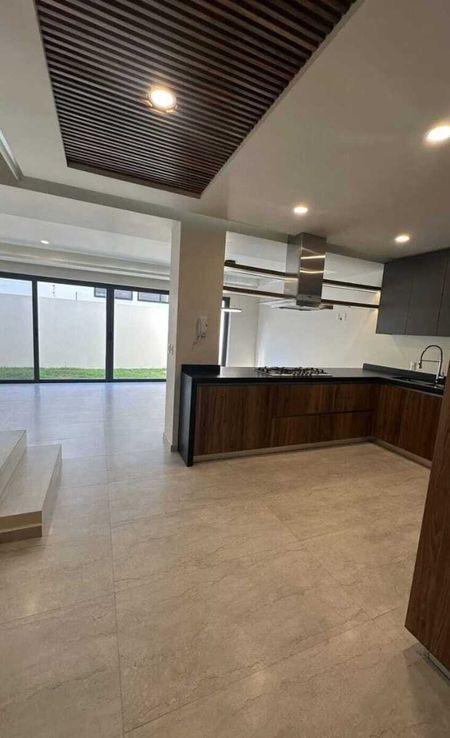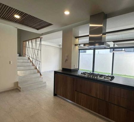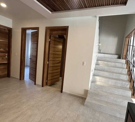 Hermosa residencia en exclusivo condominio de solo 48 casas, ubicada frente a la Casa Club. Cuenta con excelentes acabados y materiales de primera calidad: pisos Interceramic, madera de Parota en los tres niveles, cocina integral equipada con cubierta de granito, aluminio tipo panorama y cristal templado (6 mm en baños y 9 mm en pasamanos). En planta baja ofrece cochera para dos autos, estudio o recámara con baño completo, sala, comedor, cocina, cuarto de servicio y amplio jardín. En planta alta se encuentran tres recámaras, cada una con baño propio; la principal con vestidor. En tercer nivel, roof garden con área techada, baño completo y dos terrazas con barra. El fraccionamiento cuenta con alberca, salón de usos múltiples, áreas verdes, CCTV y acceso controlado 24/7. Excelente ubicación cerca de escuelas y plazas.