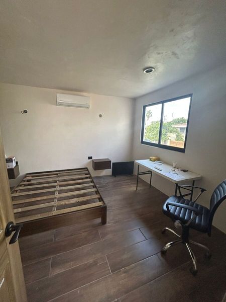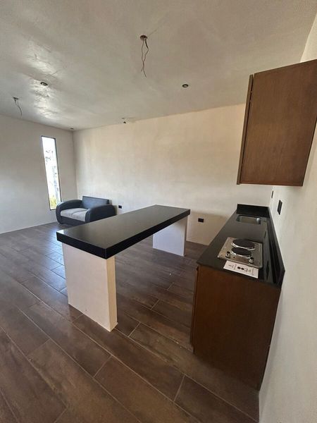 El departamento se encuentra en planta alta, cuenta con entrada independiente, una habitación con closet, un baño, sala-comedor corrido, cocina equipada.