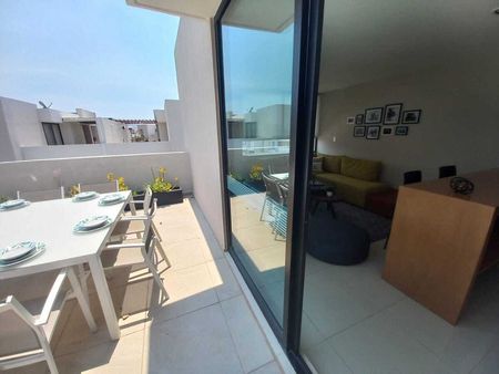 PB: Sala, comedor, preciosa y amplia cocina abierta y equipada digna de un chef, medio baño, precioso jardín con terraza techada, cuarto de servicio con baño completo, 2 lugares de estacionamiento.