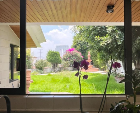 Casa con distribución arquitectónica de 5 recámaras con baño y vestidor, 2 salas, estudios, amplia cocina, área de servicio completa, 6 estacionamientos y un espectacular jardín perimetral! Detalles de madera, excelentes entradas de luz, amplios vestidores, el diseño es de mucho carácter y personalidad. Ubicación en esquina, mucha luz y vista perimetral.