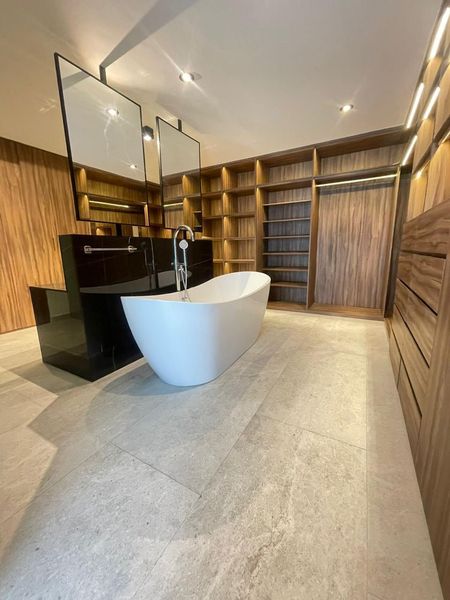 3 habitaciones con baño completo , la principal con vestidor y tina