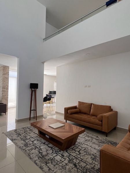 La casa es semi-amueblada y cuenta con lo siguiente: