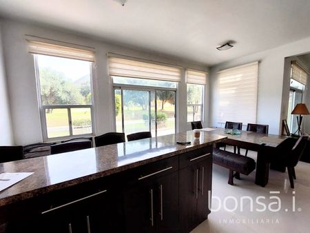 Fully furnished and equipped house for rent. It is located in the Baja Country Club, located in a magnificent valley in the port of Ensenada, only 30 minutes from the city center and close to the transpeninsular highway. The house is conceptualized in one floor which is distributed in living room, dining room, kitchen with bar, two bedrooms, two full bathrooms, laundry room, patio with outdoor dining area and barbecue in front of the golf course. Access is restricted, it has a 24-hour surveillance booth. Includes: use of swimming pool, jacuzzi, gym, barbecue area with children's games and basketball court and volleyball court.