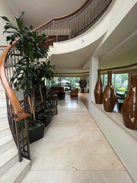 Segundo nivel, cuarto tv y cuatro recentaras muy amplias con baño y vestidor. Vista verde en todos los ventanales. Vestíbulo de doble altura.