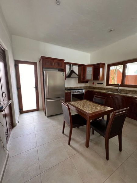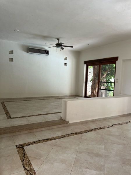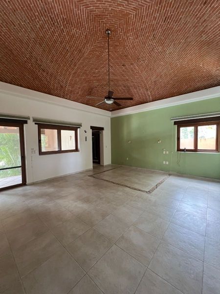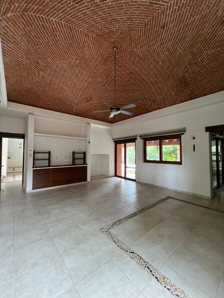 Planta baja: Recibidor, sala, comedor con amplios ventanales alemanes de doble cristal con vista al jardín , baño de visitas, cocina integral con barra de granito, alacena, patio, bodega, cuarto de lavado y cuarto de servicio con baño completo, dos lugares de estacionamiento.