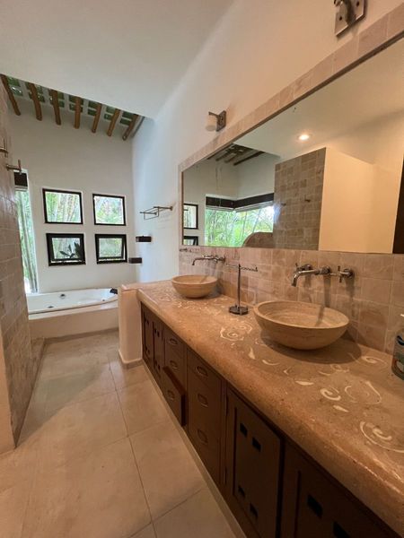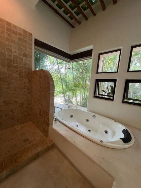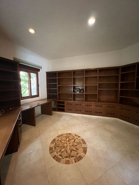 Recámara principal: sala para tv, walking closet y baño/jacuzzi con ventanal con vista al jardín, estudio/biblioteca.