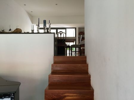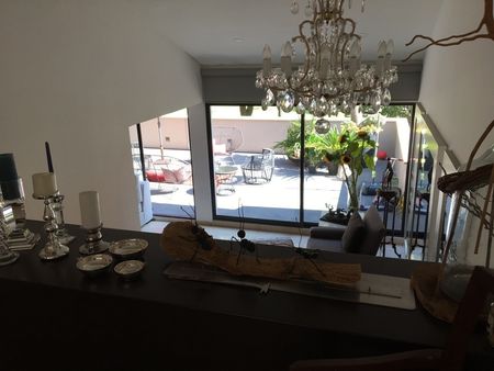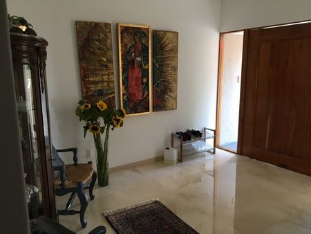 Casa en conjunto “Las Tejas”, Bosques en las lomas con estricta vigilancia. Condominio dividido en 4 módulos con jardín común con juegos y estacionamiento de visitas en cada módulo. Remodelada en su totalidad en 2006. Pisos de madera y mármol. Persianas enrollables. 2 recámaras con muy buen vestidor y una con closet. Estudio. Sala de t,v, con mueble de madera empotrado, cantina. Terraza delantera de 45 mts y otra terraza trasera se 45 mts con estudio independiente con baño completo. Bodega, cuarto de servicio, lavandería.