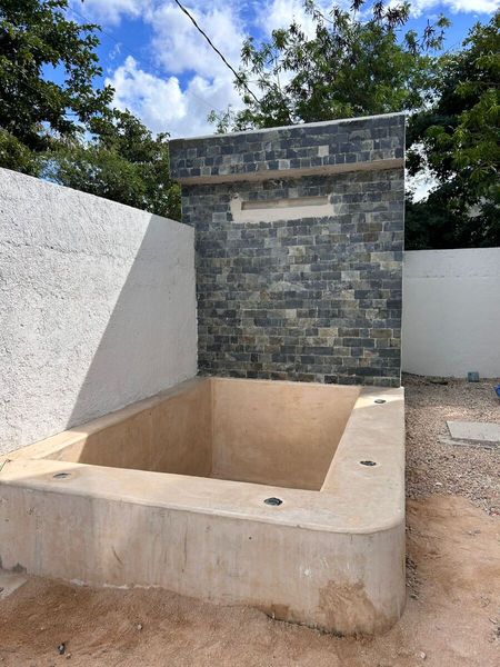 Alberca con fuente de cascada.