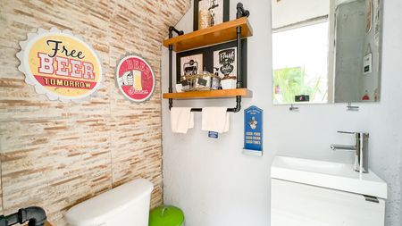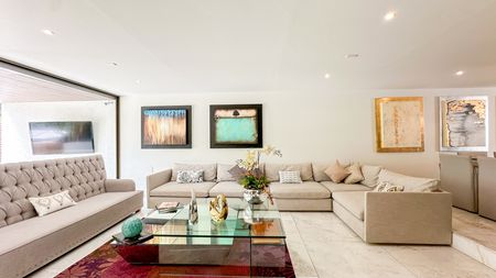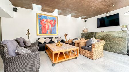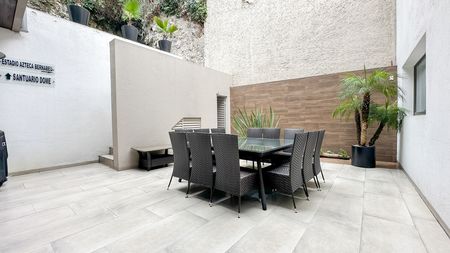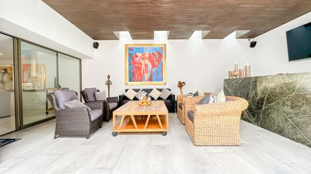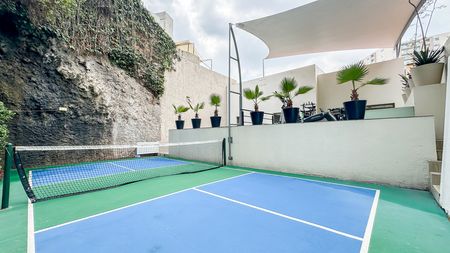 La casa además tiene espacios sociales increíbles como la terraza frontal con jacuzzi y fire pit, la terraza trasera con sala, comedor, bar y baño de visitas; en planta baja un espacio social perfecto para usarse como salón de juegos que también cuenta con barra de bar, cava y medio baño más; pero por si fuera poco, también tiene una cancha de Pickle Ball o de futbol y un gimnasio semi abierto.