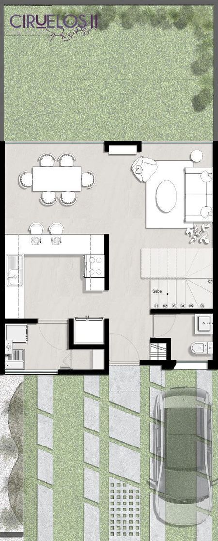 PRIMER NIVEL: *Estacionamiento para 2 autos, estancia, comedor, jardín, medio baño, cocina con barra, área de servicio.