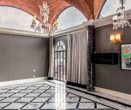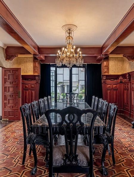 Desde su imponente fachada hasta sus interiores únicos, la propiedad ofrece una colección de elementos arquitectónicos y decorativos de gran valor: mármol de Carrara en una sola pieza, pisos originales de parquet, mosaicos sevillanos incrustados, tapices italianos, chimeneas de piedra esculpida y candiles originales de época que aportan carácter y sofisticación a cada espacio. Los muebles empotrados han sido restaurados respetando el diseño de mediados de siglo.