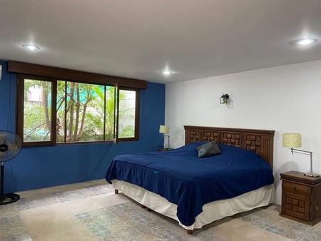 Cuenta con techos altos, dos aires acondicionados, cortinas en las recámaras, tv en la sala, lavadora y calentador eléctrico