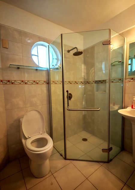 Recámara secundaria con clóset y baño completo con cancel de vidrio templado