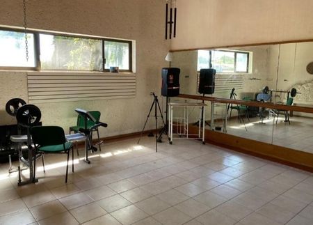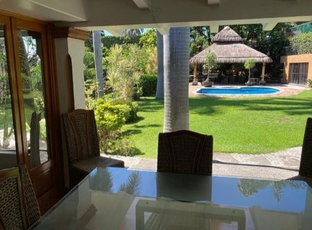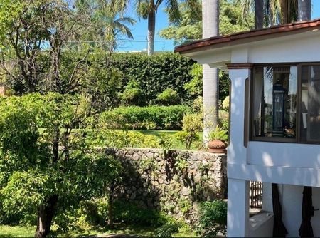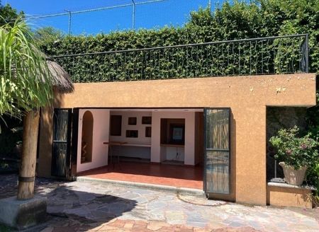 Amplio jardín en 2 niveles con pequeño bar con barra y tarja