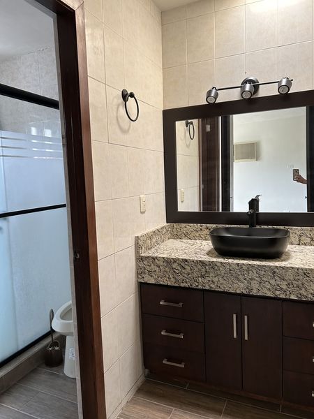 Estancia familiar, recámara principal con baño y clóset completo y dos recámaras secundarias cada una con su clóset y compartiendo el baño.