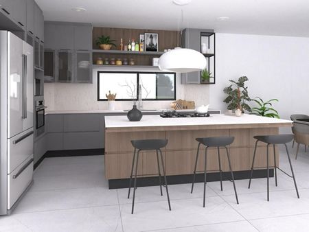 -Cocina abierta a área social diseñada con acabados de lujo, cubierta de cuarzo, listón de cedro.