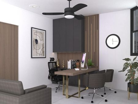- Área social techada con ventiladores y cocina con cubierta de cuarzo.