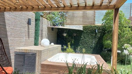 En planta baja se encuentran dos recámaras con baño completo, una de ellas con jacuzzi y vista al jardín trasero, ambas equipadas con aire acondicionado, televisión y frigobar. También cuenta con cocina integral, cuarto de lavado con lavadora y secadora, sala-comedor con televisión, jardín con jacuzzi, fuente y regadera, área de sauna y masajes, además de una bodega. La cochera es para dos autos con portón eléctrico independiente. En planta alta hay cuatro recámaras amuebladas, cada una con baño completo, tres de ellas con jacuzzi y balcón. En la parte frontal de la planta baja se encuentra un departamento independiente que incluye baño completo, cocina, jacuzzi y sala. Ideal para inversión y arrendamiento por recámara. Libre de gravamen.