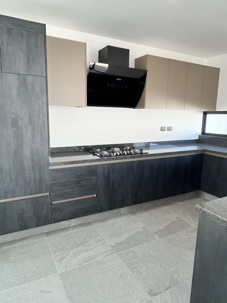 - Cocina equipada, con cava de vinos, especiero extraíble, torre de hornos y área para TV. (Parrilla, Campana moderna, tarja moderna y con lavado de vasos a presión)