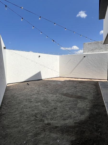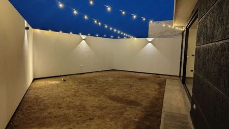 - Apagador smart para iluminación en fachadas y patio posterior, incluye tiras de iluminación vintage en jardín posterior.