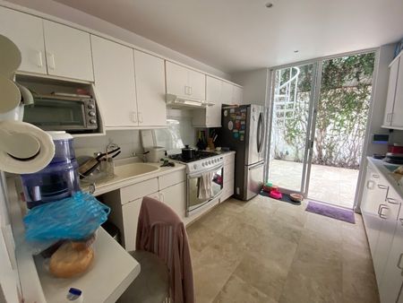 una terraza muy agradable, la cocina también sale a la terraza y en ese nivel esta el 1/2 baño de visitas.