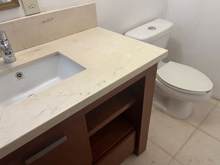 Cocina integral de madera con cubierta de granito, estufa empotrada y tarja de acero inoxidable