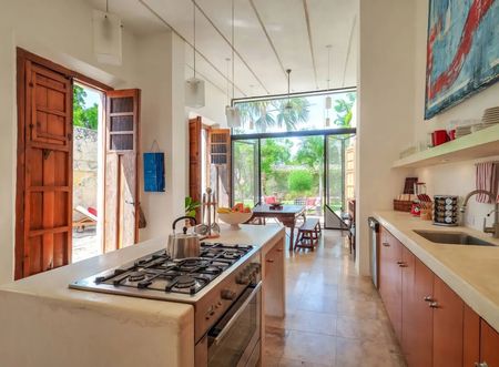 Ubicada en el Centro Histórico de Mérida, a solo unos minutos del Mercado y de la vida nocturna. Casa creada con un espacio cálido y acogedor, inspirado en el sur de Francia y la Toscana. Con techos de hasta 7 metros de altura y vistas impresionantes, la casa es un lugar especial.