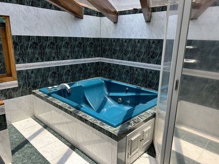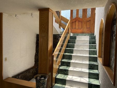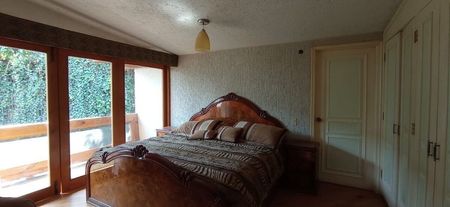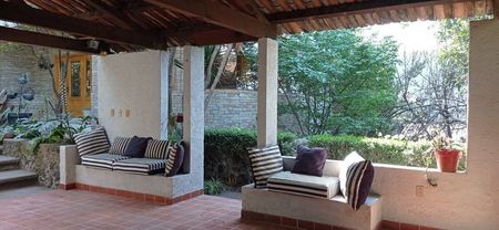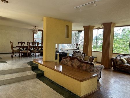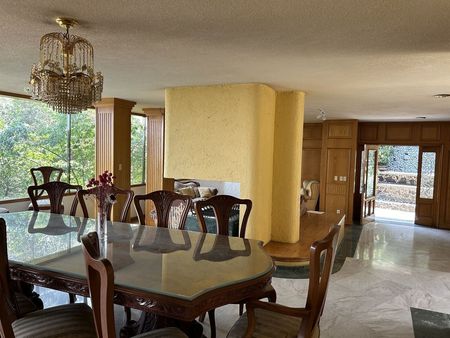 Muy buena casa al Sur de la Ciudad en buenas condiciones, tiene una terraza con asador, tarja y baño, un bello jardín con arboles frutales, al fondo un gimnasio con baño. Cuenta con 4 recámaras cada uno con baño y jacuzzi, 2 recámaras comparten baño, lugar de estacionamiento para 5 autos techados. Un departamento independiente con cocineta, estancia, recámara y baño. Tiene un salón para eventos con vista espectacular de la CDMX, cocina, baño con jacuzzi y bar. La planta principal cuenta con una amplia estancia de sala, comedor, estudio y medio baño, cocina integral con desayunador y una gran despensa, cuarto de servicio con baño, bodega y área de lavado. 2 cisternas de 45,000 litros. Ubicada a 4 kilómetros de Insurgentes Sur y Viaducto, Centro de Tlalpan, comercios, bancos y restaurantes.