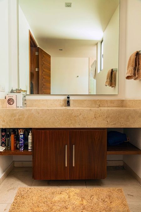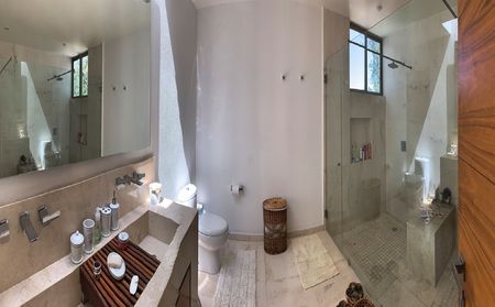 • Recámara principal muy espaciosa con vestidor enorme, baño con 2 lavamanos con cubierta de marmol y regadera amplia con vidrio templado de 9mm
