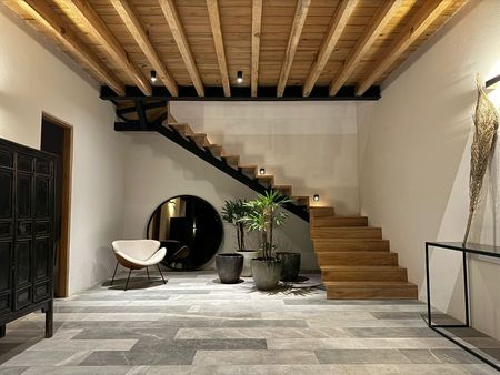 • Jardín inferior (366 m2) con pinos originales del terreno (zona de juegos).