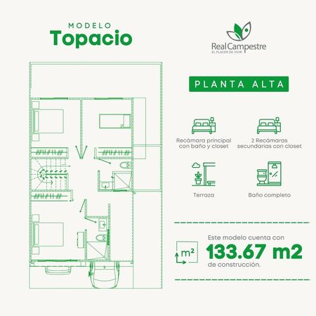 Lo podrás encontrar en el Cluster 8 de nuestro Residencial Real Campestre; cuenta con 133.67 m de construcción en un terreno de 123.25 m