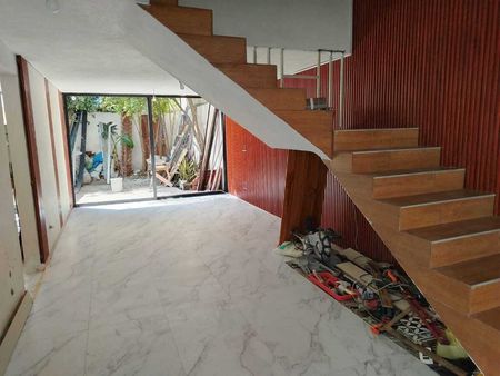Casa en Venta, 146.44 m2 terreno, recién remodelada de 3 recamaras, 2 baños y medio, sala, comedor, cuarto de servicio, un lugar de estacionamiento.