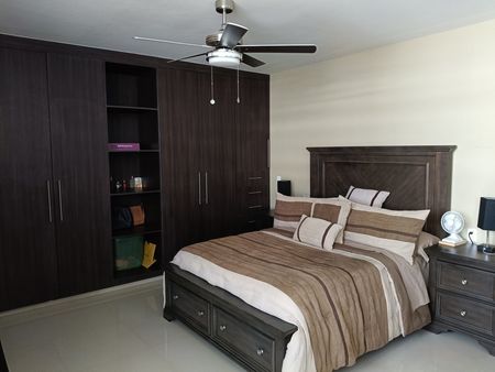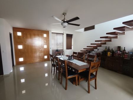 Planta Alta cuenta con área de TV, tres recámaras cada una con baño completo, la recámara principal cuenta con terraza y vestidor así también una secundaria, la otra con closet de piso a techo, toda la casa cuenta con ventiladores, persianas y mosquiteros, tinaco de 1100 lts, dos hidros, calentador solar y normal, garaje para dos autos, cisterna de 2500 lts, se encuentra en esquina y muy cerca a las áreas comunes.