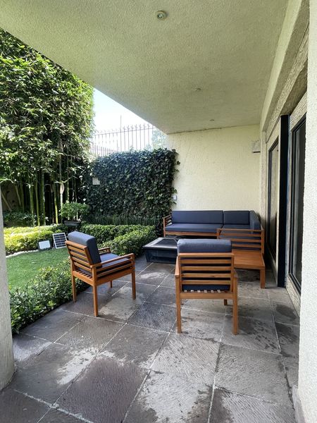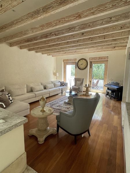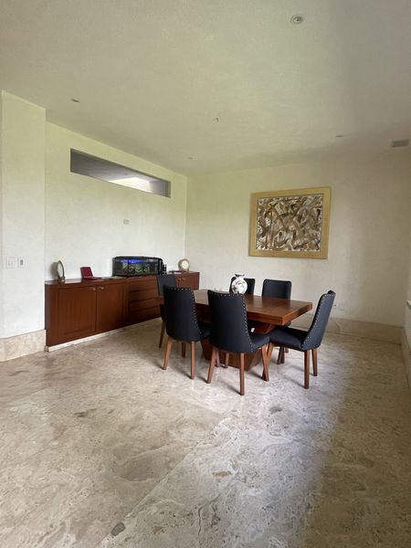 Esta residencia consta con de recibidor, despacho,, baño de visitas, amplia sala con pisos de madera y vigas en el techo, comedor con ventanales que dan a la terraza y al jardín antecomedor cocina equipada, alacena, , En el primer piso se encuentran tres recámaras con vestidor y baño, la principal con vestidor doble, balcon con vista al parque, sala de t.v., en el sotano se encuentra un hermoso salon de usos multiples con cava, cuarto de servicio, lavandería, bodega, cuarto de maquinas, estacionamiento para 4 autos.