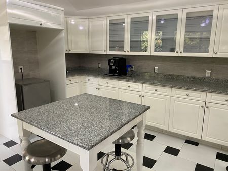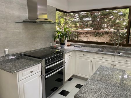 Espaciosa, con abundantes espacios de almacenamiento, despensa, mesa central y equipada con electrodomésticos, estufa con horno eléctrico y de gas, lavavajillas, microondas y enfriador de vinos.