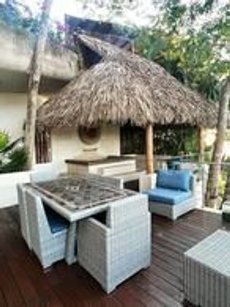 - DESAYUNADOR EN TERRAZA CON SALA Y JACUZZI CON PALAPA.