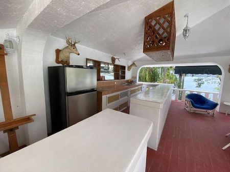 Palapa con cocina (asador, plancha teppanyaki), barra y terraza con vista al lago