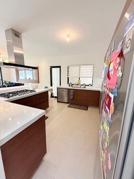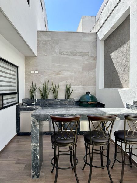 • Patio con barra de asador de lujo: granito exótico, cajones de acero inoxidable y preparación para empotre de green egg. El patio cuenta con riego automático, la casa se entrega con la aplicación funcionando.