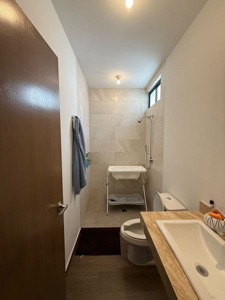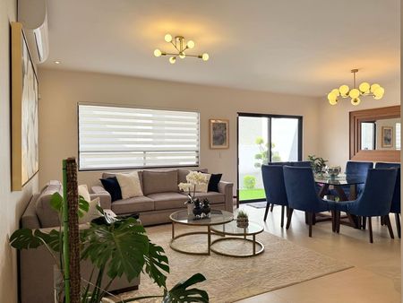 Casa prácticamente nueva con 5 años de antigüedad con acabados de lujo,Cochera para 2 carros, portón eléctrico de 3 hojas para mayor comodidad. Techos altos y doble altura en cubo de escalera, cuenta con tragaluces que le dan amplitud y mucha iluminación. La carpintería de toda la casa es de madera de okume. Cuenta con 2 mini splits LG de 2 toneladas para areas sociales y de 1.5 ton para el cuarto principal y el secundario.