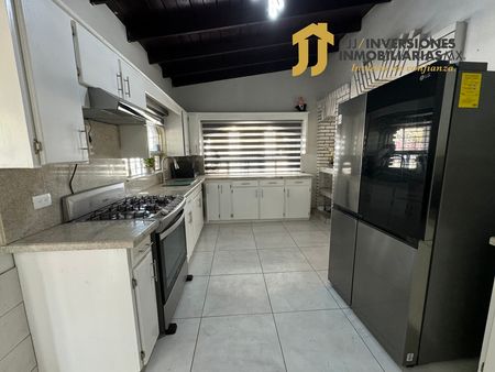 Casa 3 recamaras, 1 1/2 baño, cocina integral, semi amueblada, garaje para 3 autos.