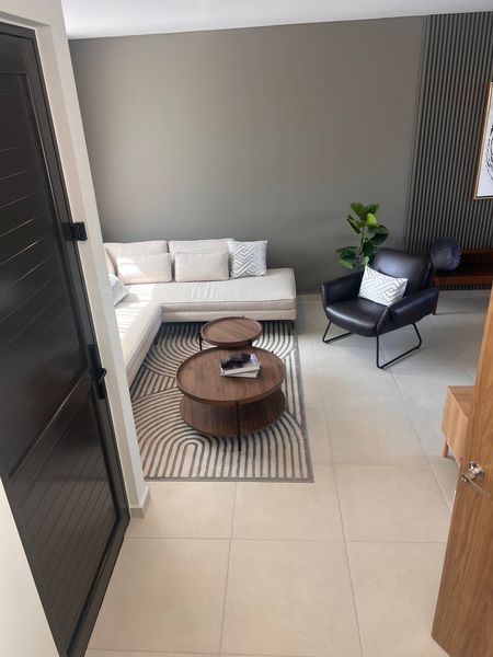 Cochera para 2 autos, medio baño , sala comedor , cocina amplia equipada , área de servicio.
