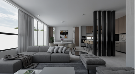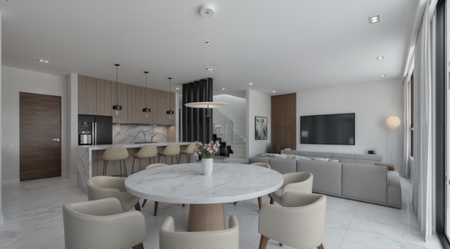 En planta baja tienes 1 medio baño de visitas, un área de cocina abierta con despensa walk-in, comedor, sala y un patio de 85 m2. Ademas de un closet / bodega.