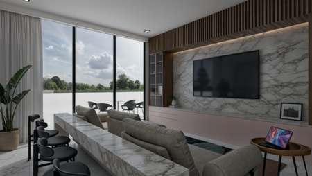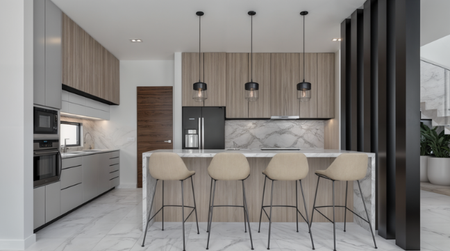 Cuenta con una altura libre de 3 m. Se entrega con: barandales de cristal, canceles de vidrio en recamaras, espejos, puerta principal de acero, puerta de pasillo, tragaluz en closets, baños, y recibidor, accesorios de baño y acabados en fachada.