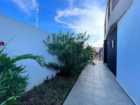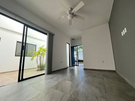 Recibidor, 2 recámaras con clóset, 2 baños completos, estudio, terraza con patio abierto y semitechado y garage para 2 autos con portón automático
