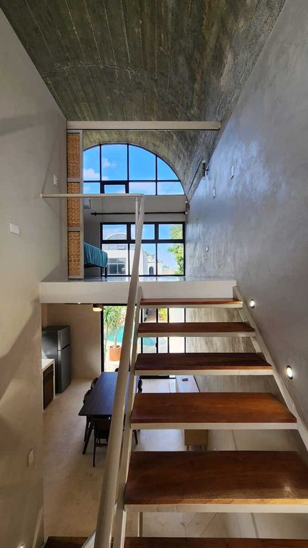 Comoda y flexible casa tipo loft en renta, totalmente amueblada y equipada con todo lo necesario lista para empezar a vivirla, diseño único con techos altos tipo boveda.