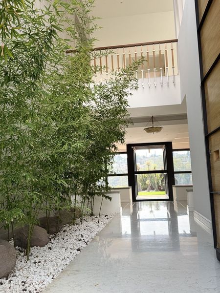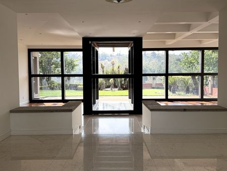 Cuenta con estacionamiento cubierto para 8 coches, cuarto de choferes, y de servicio.