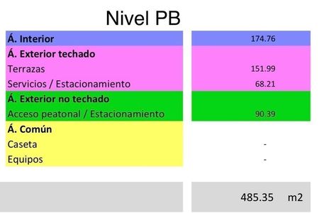 PB acceso - 485 m2. Vestíbulo con doble altura, terraza. En esta planta se podría poner un gym y oficina. O hacer un salón de eventos con bar que da directo a una gran terraza.
