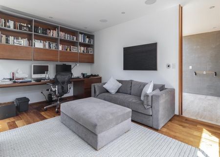 Planta Alta: Tres amplias recamaras con baño y vestidor, un Family, la recámara principal tiene una salita independiente, una agradable terraza con vista al jardín. Con 4 estacionamientos, un baño para chofer, una bodega, Jardín 120 m2, terraza techada con una salita de 20m2, cuenta con pisos de madera en toda la casa, así como mármol. Cuenta con sistema de iluminación en sala, comedor y family, paneles solares, calefacción eléctrica en toda la casa.